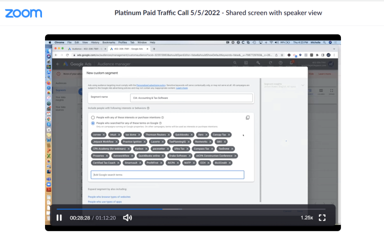 A. I did it with Maxine, COD. So I have ’em ready to go. I have an industry layer with google search words with accounting firms, bookkeepers and accountants.