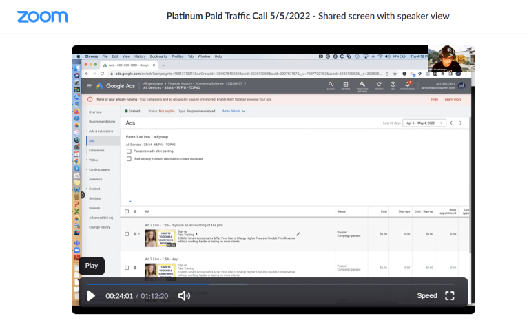 - Went over the importance of scaling campaigns by 20% to keep the account stabilized