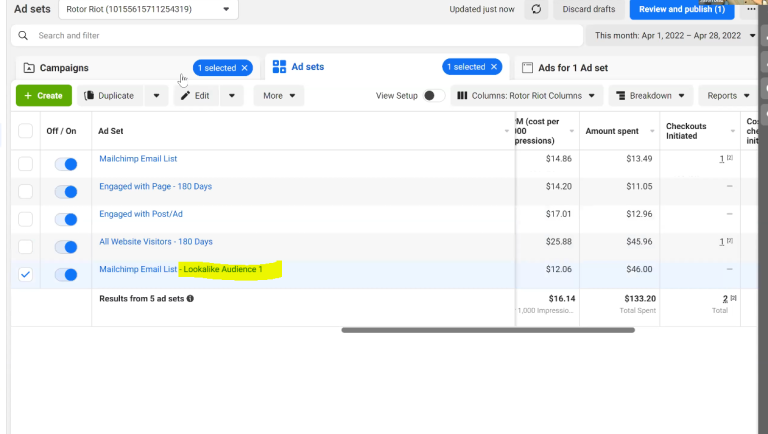 Looking at the second campaign Jason advised, Lookalike should be in the Cold campaign. The difference between Email List and Lookalike is in Email List contains people who already know who you are and your product whereas, Lookalike is searching for cold leads. So we turned Lookalike off.