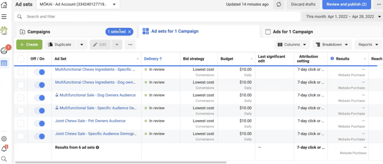 – Let it run for 7 days. Follow a simple rule, if your ad is spending $10/day and doing well, raise it by $2. And keep on going until you see it fatigue.
